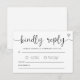Keep your wedding details simple and elegant with this Response Wedding Insert Card. Designed in a clean and minimalist style, this RSVP card makes it easy for guests to confirm their attendance and share meal preferences. Perfect for modern weddings, this timeless insert card adds a touch of sophistication while keeping your stationery suite coordinated and stylish.