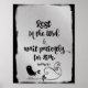 Rest in the Lord Bible Verse poster prints with silver background, black edges and bird on a branch accent. KJV Scripture quote from Psalms. See more at Christian Quotes Shop.