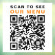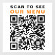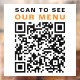 Modern white window cling sign for your restaurant or cafe with your QR code for customers to scan for your contactless menu. "Scan To See Our Menu" is in bold black and orange typography (contact us if you would like to change the colours) and you can personalise the text.