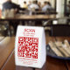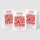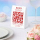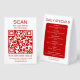 Simple modern deep red and white QR Code "Scan" with restaurant name, address, phone number and web address on front with "Daily Specials" listed on back.