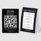 Simple modern black and white QR Code "Scan" with restaurant name, address, phone number and web address on front with "Daily Specials" listed on back.