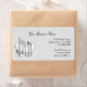 Custom restaurant themed labels with a set of silverware on a table napkin in black and white with room for your name in script and address in retro serif custom white text on light grey, or customise this design to change fonts, background colours, add your logos, and more, even save your design for later.