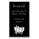 A custom restaurant magnetic business card template with script text and a set of utensils on a pretty embroidered napkin in greys on black, with white script letters.