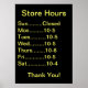 Great Sign to post in your window. Lets people know your hours. Fade resistant ink, don't waste your money on others! Totally customizable. Please "bookmark" this site, thank you. Check out some of our other great designs!