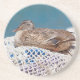 A duck is resting on a heap of fishing nets on the island of Mallorca, Spain.