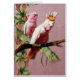 Gorgeous tropical parrots. These pink Cockatoos are resting on a branch with soft pink floral pattern background. Customise inside with your text or delete if you prefer blank.