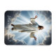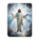 Resurrection image surrounded by clouds, the text "He Is Risen", in a brilliant light. Generative content. Easter keepsake magnet