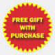 Free gift with purchase bright red and yellow retail badge.
