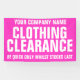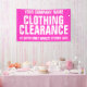 Retail sale signage banner, inform customers of sales with this Sale Sign banner in bright pink and white. Ideal to generate business and alert passing customers of shop and retail store sales or other events of your choice. Customise with your own business name and clearance event details.