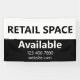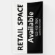 This banner is black and white. You can edit the text to meet your needs. You can edit the text to show your custom text (shown: Retail Space Available) The top half is white with black text. The bottom half is black with white text for the company's phone number and website.