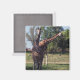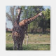 This photo of two reticulated or Somali giraffes hanging out at the zoo on a sunny summer day covers the front of a square refrigerator magnet. This adorable magnet is great for kids or as a small gift or stocking stuffer.