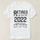 Retired 2022 Funny T Shirt Change To Any Month from the example of September. RETIRED [ANY MONTH] 2022 HAVE FUN AT WORK TOMORROW. Great looking T Shirt for someone who is retiring in the year 2022, with the added touch of a personalized month if required, if not just delete the month with the CUSTOMIZE IT button Also available in all colors, but see different advert for COLORED T shirts, as the text will be White.