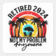 A funny and hilarious retirement gag saying design that says "Retired 2024 Not My Problem Anymore" for men and women who are retiring from their job in this 2024 and spend more time with thier family relaxing and enjoy their life.