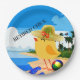 Retired Chick, colourful design with chick on the beach, custom-designed paper plate.