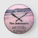 Retired Couple Family Name Fun Beach Retirement Round Clock