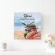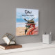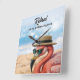 Retired Flamingo on Beach with Hat & Sunglasses Square Wall Clock