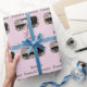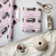 Retired Funeral Director Gift Wrapping Paper, vintage black hearse design on cream background.