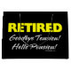 Retired: Goodbye Tension Hello Pension! Witty and funny Retirement Saying / Quote for anyone who is retiring. The black background can be changed to change to any colour you want.