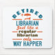 This funny retired librarian design says: "Retired librarian just like a regular librarian only way happier." Grab one for a retiring librarian or library worker.