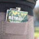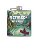 You're retired and the only work you have to do is to paddle your canoe. This vintage retro design is a canoeist paddling a beautiful mountain lake.