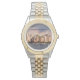 This wrist watch, with it's unique photo face and two tone gold/silver strap, is an elegant gift for a retiree. The watch face is decorated with our original photograph of the Lower Manhattan skyline of New York City (NYC). Lots of colourful tall buildings, with sailboats on the Hudson River in the foreground. New Yorkers will love it!!!. Text is name and "Retired!" but you can easily modify it. You can also select from 12 other strap options. All Rights Reserved © 2017 Alan & Marcia Socolik