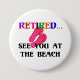 Retired...See You at the Beach, pink flip flops, button. Creative and unusual gifts for all occasions at zazzle.com/store/virginia5050/products, zazzle.com/store/christmascelebrate/products and redbubble.com/people/virginia50