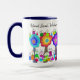 Retired Social Worker Mug with adorable whimsical birds and trees. Bright, bold colours and a fun design created especially for social workers.