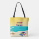 Retired Teacher, fun at the beach, custom-designed all-over-print tote bag.