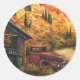 Retired truck by garage painting by David Paul. Fall colours with blue sky on customisable products