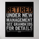 Retired Under New Management See Grandkids Funny R Poster