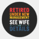 Retired Under New Management See Wife Funny Retire Classic Round Sticker