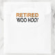 Retired! Woo Hoo! Funny saying on t shirts, stickers, mugs and more. Original design.