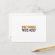 Retired! Woo Hoo! Funny saying on t shirts, stickers, mugs and more. Original design.
