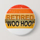 Retired! Woo Hoo! Funny saying on pin buttons.