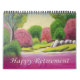 This 2016 two page standard calendar has a red wire, an artistic naïve painting with garden with a stone path, green bushes, cherry coloured bushes, and the expression “Happy Retirement” on a cherry faded stripe in all months. It is an elegant calendar to celebrate your retirement and a great present for your friends and loved ones too. You can also match it with other Artcor7 personal or decorative accessories at Zazzle.