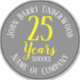 Retirement Sticker. Medium sized round sticker for a Long Service or Retirement Award with Name & Company as well as number of years service.