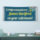 Perfect banner for your retiring co-worker, boss, or friend. A blue background with confetti stars personalised with the retiree's name.