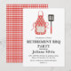 The playful apron and spatula graphics add personality and humour to the design, making it especially fitting for retirees who love to cook, grill, or entertain. At the same time, the clean layout and cheerful red chequered back ensure the design remains stylish, inviting, and easy to coordinate with other retirement party supplies. Whether you’re hosting a small family gathering or a large community sendoff, this invitation brings fun, flavour, and functionality to the forefront.