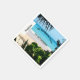 A beautiful sea side image is the background for this Boarding Pass Destination Tropical beach design.