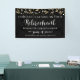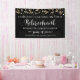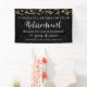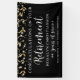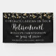 Celebrate a retiring employee with this personalised banner sign in black, gold and white with gold confetti, streamers and lights, a modern, chic calligraphy script typography title RETIREMENT and personalised with their name, years of service and company or organisation name or other custom text. Contact the designer via Zazzle Chat or makeitaboutyoustore@gmail.com if you'd like this design modified or help with another colour scheme, on another product or would like coordinating items.