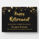 Create a personalized retirement commemorative keepsake award plaque to recognize a retiree. The black and gold stars design with HAPPY RETIREMENT in modern hand lettered brush script typography and personalized with the retiree's name, years of service and organization name or other custom text. Contact the designer via Zazzle Chat or makeitaboutyoustore@gmail.com if you'd like this design modified, on another product or would like coordinating items.