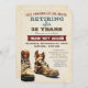 He's hanging up his boots! Our invitation is perfect for the man in your life who is familiar with construction, the military or any other trade that requires wearing boots.