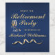 Celebrate a distinguished career with our Elegant Formal Retirement Party Wine Label! Featuring "Retirement Party" in a graceful script font, this design includes two golden champagne glasses against a sophisticated blue background. The text is elegantly highlighted in golden shades, with a stylish curly ribbon between the details. Perfect for family or corporate organizers, this customisable label allows you to easily add name making it a comprehensive choice for a memorable send-off.