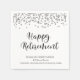 Modern script typography HAPPY RETIREMENT napkins personalised with the retiree's name, years of service and the company or business, organisation or school name. Silver confetti border with black text. Contact the designer if you'd like this design modified or on another product to complement your retirement party ensemble.