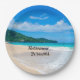 Beautiful sunny day, sandy beach, blue skies, and lush green hills: Retirement...It's Beautiful