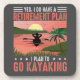 Funny, humorous kayak design T-shirt and other items perfect for anyone who loves kayaking, features a female kayaker relaxing in her kayak on the water and text that reads Yes I Do Have a Retirement Plan. I Plan to go Kayaking!