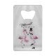 Celebrate the best years of your life with this beautiful and funny retirement themed bottle opener. The design features two chic and classy pink flamingos in various shades of pink, grey and black. The female is wearing a stunning hat with a matching purse. The male is wearing a regal top-hat, black shiny dress shoes, a bow tie, and a black pipe. The funny saying reads, "Retirement looks good on us!" The background is a contemporary light grey pattern. The stainless steel bottle opener is perfect for a humourous retirement party gift, Grandparent's Day gift, gift for senior citizens, flamingo lovers, or anyone enjoying retirement! Please browse our complete collection of flamingo-themed retirement cards, gifts, t-shirts, home decor, and more. Special design requests accepted.