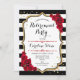 Retirement Party Invitation. Elegant white black, red design with faux glitter gold. Features stripes and red roses. Perfect for an elegant retirement party.