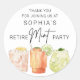 Funny Retirement Favour Sticker: Retire MINT party. Celebrate the next chapter in style with this Modern Minimalist Cocktail Retirement Party Collection! Ideal for honouring anyone stepping into the exciting world of retirement, this design features a chic hand-script font paired with three vibrant watercolor cocktails. Whether you're throwing a retirement bash for a teacher, lawyer, doctor, artist, secretary, health care administrators, engineers, contractors, marketing, construction or any other profession. This customisable collection is perfect for adding a personal touch to your retirement party, making it truly one-of-a-kind! Easy to personalise and tailor to your unique retirement event, it’s the ultimate way to mark this special milestone with a modern, fun flair! See the entire collection for more matching items.
