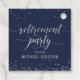 These elegant and festive retirement party favour tag feature silver (simulated foil) confetti with matching letters that say "Retirement Party" in a beautiful script font. The background colour is navy blue, but can be changed to any colour of your choice.